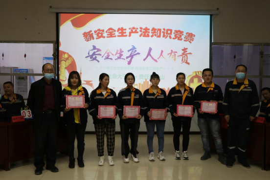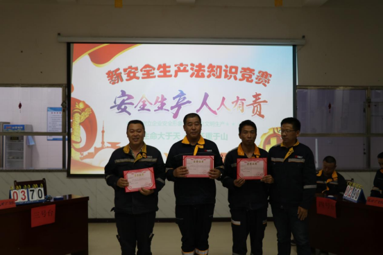 為鞏固宣貫成果,特別是提高全體員工對《新安法》的了解,提高員工安全意識,公司舉行了《新安法》知識競賽,十個隊伍參加了比賽,經(jīng)過初賽和復(fù)賽,一等獎獲得者:選廠3隊,二等獎獲得者:財務(wù)行政人力資源聯(lián)隊,質(zhì)檢化驗聯(lián)隊,三等獎獲得者:采礦1隊,采礦2隊,選礦1隊,還有四個隊伍榮獲紀(jì)念獎。本次安全知識競賽使公司《新安法》宣貫活動進(jìn)一步推向了深入,提高了員工的安全防范意識和應(yīng)對事故的處理能力,豐富了員工的業(yè)余文化生活,為進(jìn)一步落實安全生產(chǎn)責(zé)任制,有效防止安全事故的發(fā)生提供了有利保障。