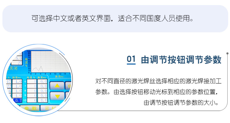 環境濕度:不高于80% 。因為焊機電源打開后,激光晶體就會持續的被冷卻系統冷卻,因為冷卻水一般會低于室溫,當環境濕度過大的時候,而激光晶體的溫度又低于室溫,這時激光晶體的兩個端面上會凝結水霧,當激光輸出的時候,這些水霧會大大降低激光輸出能量,而且這些附著在激光晶體端面上的水,干了以后,會在激光晶體的膜面上留下痕跡,這將會大大加快激光晶體膜面的老化。所以,為了防止這種情況的發生,冷水機的水溫設定,夏天不可以低于室溫3度,冬天不可以低于5度。