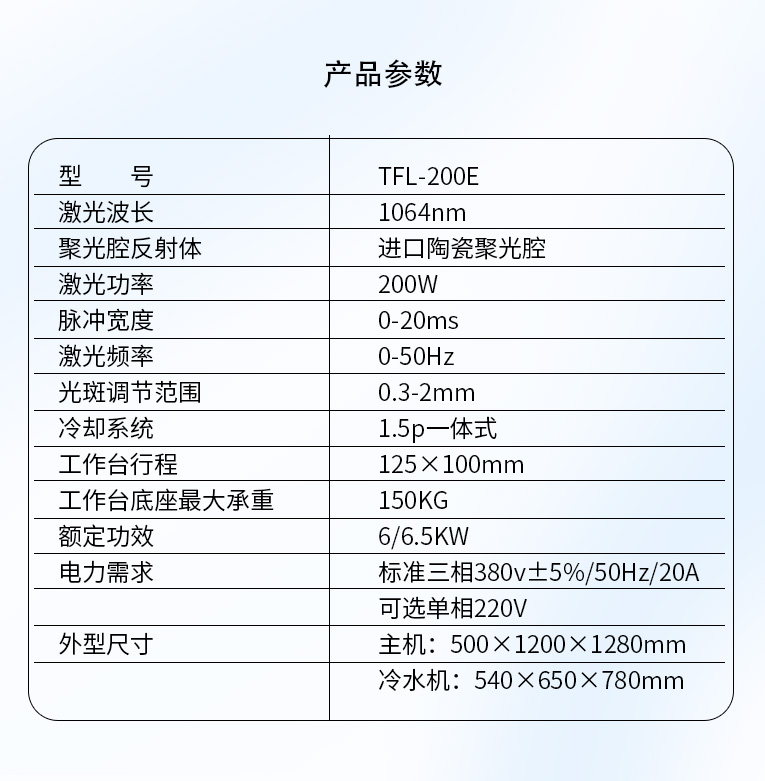 出口型模具激光焊機(jī)是通發(fā)激光公司專(zhuān)門(mén)為出口國(guó)外客戶(hù)使用而設(shè)計(jì)的系列機(jī)型TFL-200E,適用于各類(lèi)精密注塑模具、壓鑄模具等模具激光修補(bǔ)焊接;同時(shí)也適合鑄件沙孔激光修補(bǔ)、模具崩缺激光修復(fù)、過(guò)切加工等的激光修補(bǔ);各類(lèi)金屬結(jié)構(gòu)件、金銀首飾的激光焊接加工。