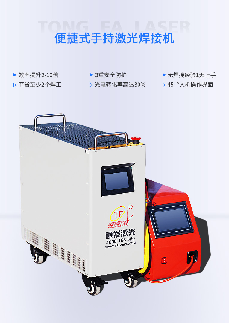 通發(fā)激光便捷式手持激光焊接機(jī),小巧便攜,方便移動(dòng),適合戶內(nèi)外外工地移動(dòng)焊接,是遠(yuǎn)距離焊接大工件的全新焊接利器。